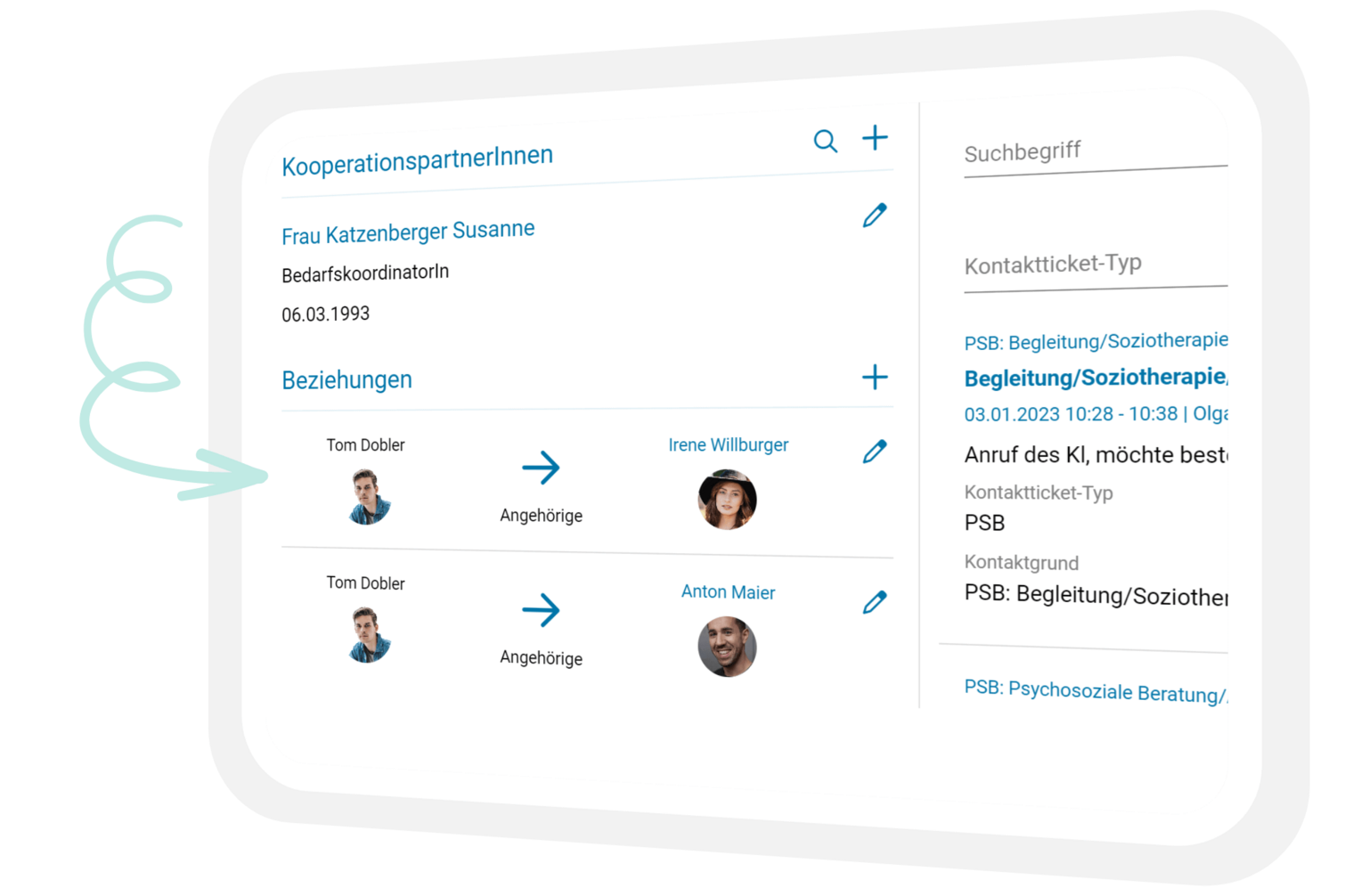 Selbstverständlich gehen wir ergänzend zu den umfangreichen Standardfeatures gern auch auf individuelle Wünsche und Anforderungen aus Ihrem multiprofessionellen Unternehmen ein – sowohl bei der Dokumentation als auch bei Auswertungen und Berichten für Qualitätssicherung und Fördergeber:innnen. Wir übernehmen dabei gern und kompetent das Projektmanagement bzw. begleiten Sie in der Entwicklungsphase.