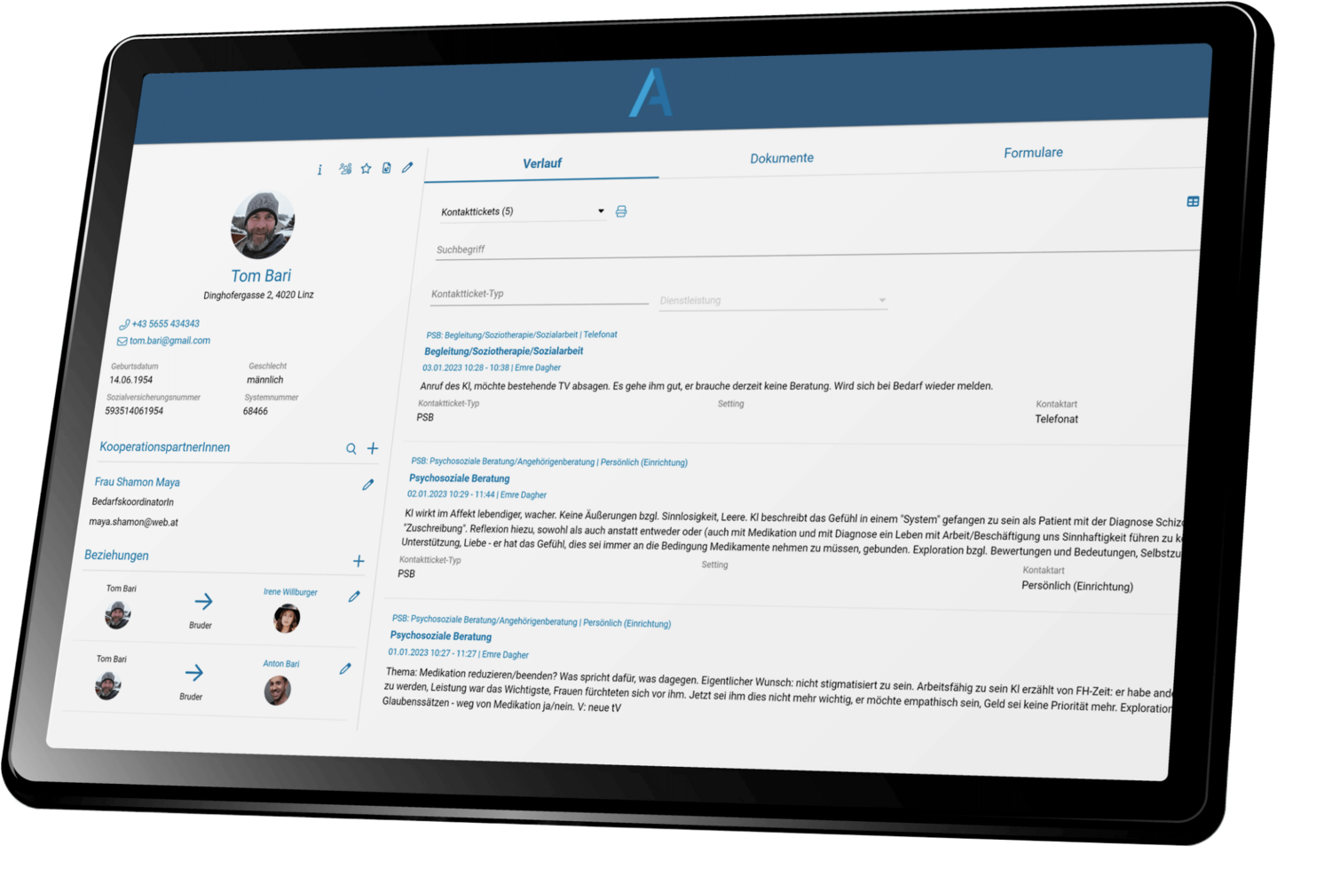 AGILIA Care unterstützt die professionelle Dokumentation und erleichtert die Qualitätssicherung von multiprofessionellen Unternehmen im Sozialbereich. Fälle, Maßnahmen und Kontaktdaten werden fokussiert auf die Person erfasst. Die Dokumentation erfolgt übergreifend über Standorte und Einrichtungen; auch für Gruppenaktivitäten. Das ermöglicht vernetztes Arbeiten von Teams und einen raschen Überblick in der Qualitätssicherung. Individuelle Rollenzuweisungen für Nutzer:innen sorgen für klare Trennungen und machen Zugriffe nachvollziehbar. Alle Daten können auch mobil eingegeben werden und liegen sicher und DSGVO konform auf unseren Servern in Österreich.
